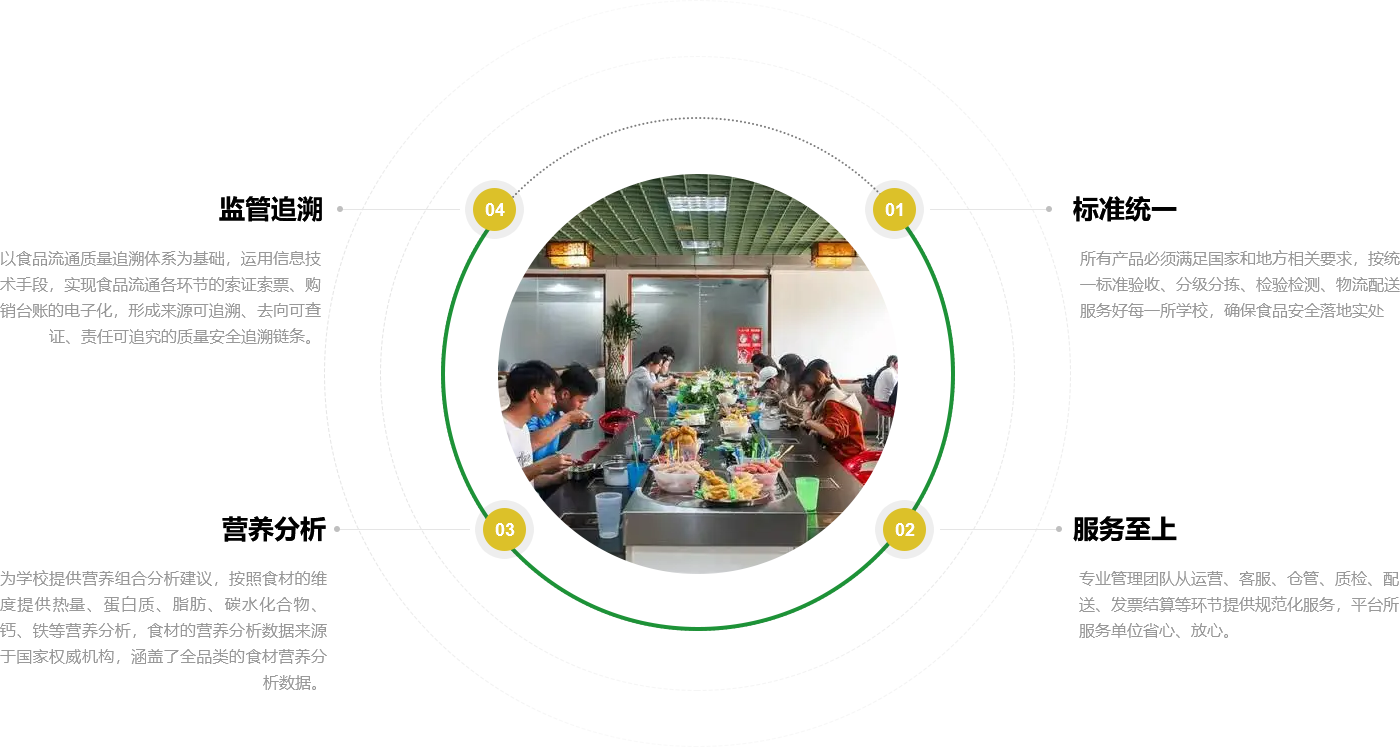 爱游戏ayx官方网站校园营养餐聚焦中小学,着眼公共食堂食品安全,依托标准的运营与严格的管理,以数字化食安监管平台为核心,确保食材供应实现全溯源、全检测, 保障食品安全,用心关爱学生每一餐。